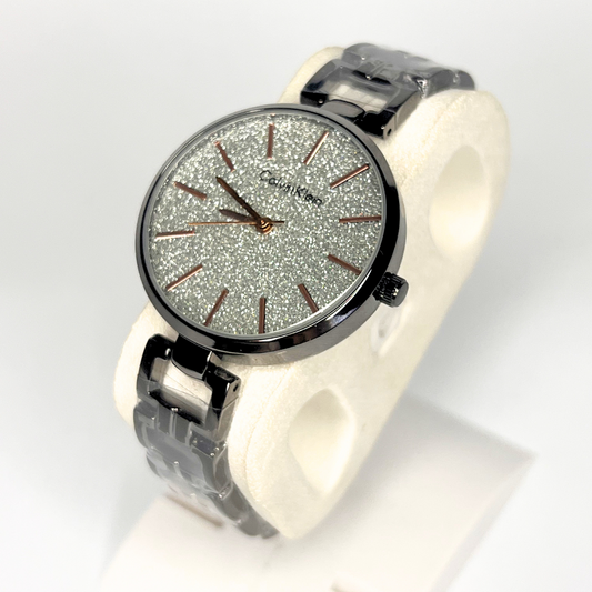 Midnight Sparkle Women's Watch β Black Stainless Steel with Glitter Dial